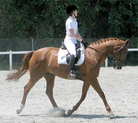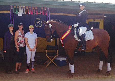 Congrats to Kelly Creek-Webb and her daughter Angelica on their purchase of “Zee Cloud”, a 14.1 hd., 8 yr. old registered USDF/USEF large pony (has his USEF measurement card) with lucky “Medicine Hat” coloring, but with two brown eyes. Registered with the APHA so can earn additional year-end awards. Doing solid 2nd and 3rd level movements with an FEI trainer. Shown 1st in 2014 with scores to 72%. Qualified for the Region 1 GAIG’s in the 1st level Open division with a 70% and 71% on 1st test 3. Jumps around nicely over Beginner Novice level show jumps and logs, and goes right through water and over small ditches. Recent successful schooling outing to the Carolina Horse Park and Running Start. Zee has been getting a clean flying change both directions and has a comfortable but “big horse” trot with an 6″ overtrack in the trot, and an expressive canter. See his other videos on our youtube channel:victoryhill1.