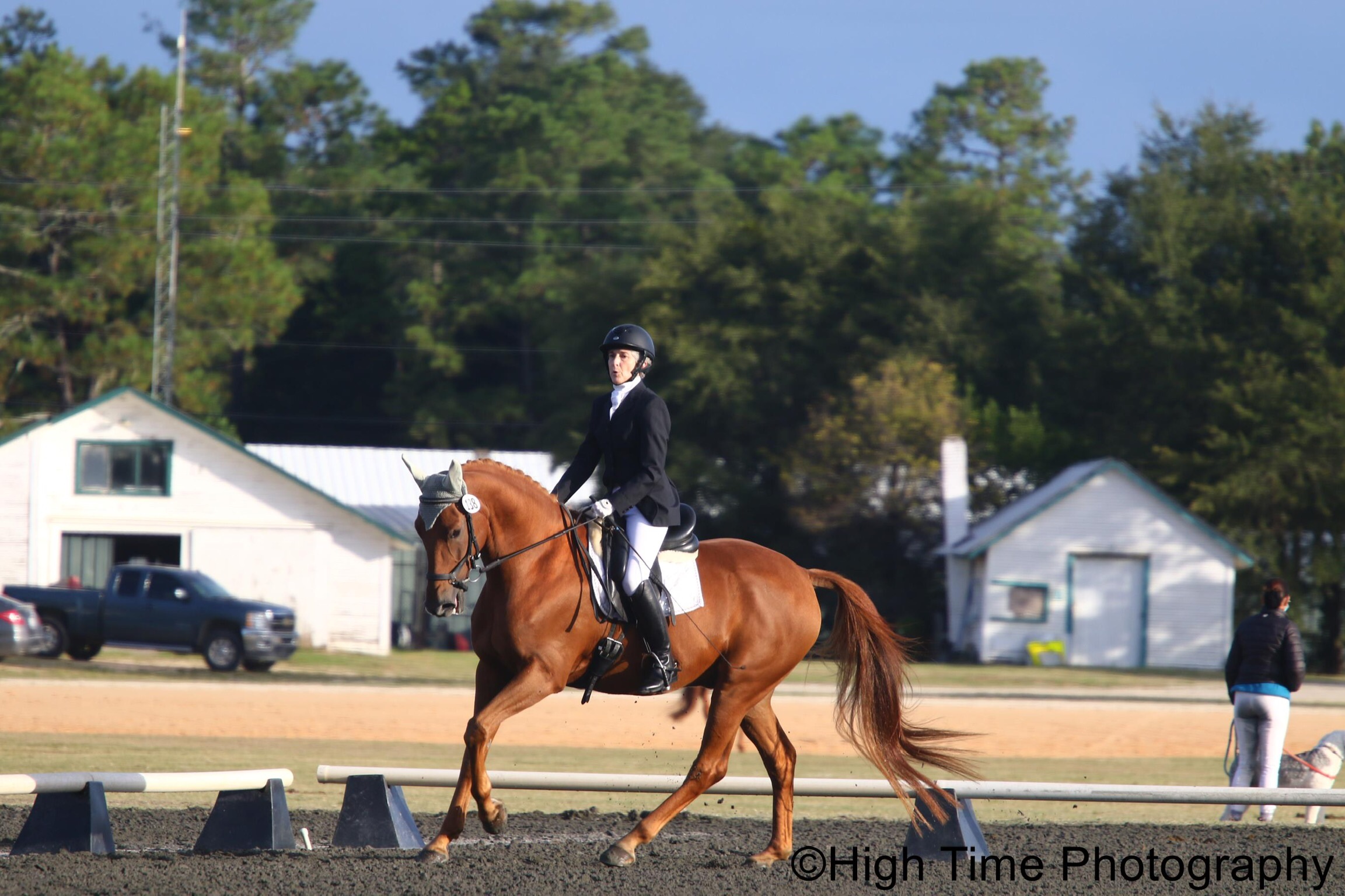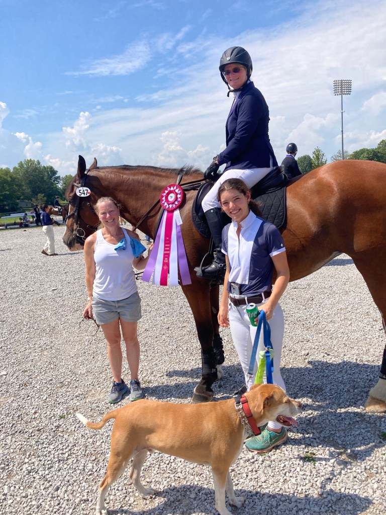 Our weekend began with a few challenges with this being Rio’s horse’s (5 yr. Hannoverian gelding Dushay HFF aka D.J. at the barn) first trip to the horse park, (and Rio’s first recognized show with him), he was a little “up” and needed a quick ride prep from E on Fri before she got on. Rio said he was leaping around after an hour of lunging and resembled something other than the horse she knows, so she was not sure she even wanted to compete. Luckily we were all able to convince her to ride and they did not put a foot wrong after that!