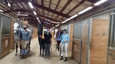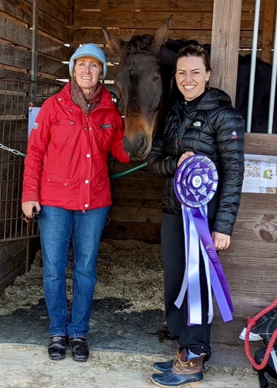 This season we were very fortunate to have two students and their horses qualify to compete at the American eventing championships at the Kentucky horse Park. Alison Eyth and her horse “Bella Chloe” finished on her dressage score and placed 12th in her division. Claire Nestor and her horse “French Connexion” aka Jaxon, had a lovely dressage test which had them tied for 6th, and a clear cross country go, but sadly had two rails and show jumping so finished out of the ribbons this time, but both pairs learned a lot, and I know that they will have even more future success. Our team was supported by Dee Albertson and Claire’s mom Natalie Scheier.