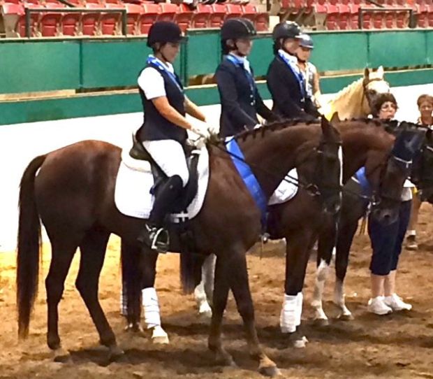 Diane Doub and her horse “Prestige” were recently named Horse of the Year for AA riders competing at 2nd level by NCDCTA for the year 2016. McKenna Shook and her horse “Dunvegan” also earned top honors at that level in the Junior Division. Mckenna and her horse have moved to a different area of the Triangle, but we still consider her part of our VHF family and send them big Congratulations. Also seen here is Lu-Ann Perryman retrieving her 6th place award for her horse “Galileo” which was earned at Training level. We hope to see lots of future success from all three horse and rider teams in the future!