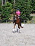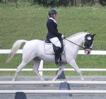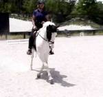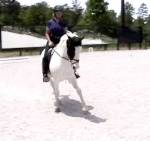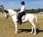 Congrats to Kelly Creek-Webb and her daughter Angelica on their purchase of “Zee Cloud”, a 14.1 hd., 8 yr. old registered USDF/USEF large pony (has his USEF measurement card) with lucky “Medicine Hat” coloring, but with two brown eyes. Registered with the APHA so can earn additional year-end awards. Doing solid 2nd and 3rd level movements with an FEI trainer. Shown 1st in 2014 with scores to 72%. Qualified for the Region 1 GAIG’s in the 1st level Open division with a 70% and 71% on 1st test 3. Jumps around nicely over Beginner Novice level show jumps and logs, and goes right through water and over small ditches. Recent successful schooling outing to the Carolina Horse Park and Running Start. Zee has been getting a clean flying change both directions and has a comfortable but “big horse” trot with an 6″ overtrack in the trot, and an expressive canter. See his other videos on our youtube channel:victoryhill1.