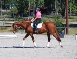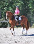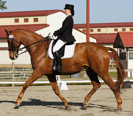 17 hd. chestnut Canadian Warmblood gelding who is currently working at the Prix St. George I-1 level, competed by Alison Coyle through 4th level and in the F.E.I. Jr. division with scores to 68%. In July of 2011 the pair earned their USDF Silver medal at the Prix St. George level. Both his sire and dam were imported from Germany, and are Oldenburg and Westphalian respectively. Qualified and competed in the 2009 NAJRYRCs as part of the Region 1 Bronze medal team for F.E.I. Jrs. In addition to this, “Bari” and Alison were rated in the top 12 in the country in that division, earning them an invitation to compete at the National Championships at Gladstone, N.J., where they finished 11th. Here is a complete list of his awards: