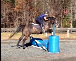 17 yr. old, 16.1 hd. black Thoroughbred gelding, “Texas Kahlua” aka “Max,” is a lower level eventing schoolmaster who will totally crawl into your lap. He has competed through Training level eventing and is also now honing his dressage skills with Elizabeth. He qualified for the AECs with his junior rider in 2010. He has three good gaits and should also be competitive at 1st and 2nd level. He is very safe on the trail, completely sound and free of blemishes, lives well with others, has good feet and is shod in plain shoes, and is very easy to handle. He is not for a beginning rider as he is forward-thinking, but would be a perfect move-up mount. Sadly for sale as his owner is now off to college.