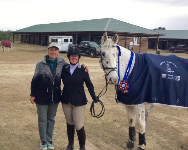 Additionally “Belissimo Volto” also qualified for the 2nd level division A CBLM finals with his owner Melissa Johnson pictured here with a 64+%. Charlotte Holt and “London” won both their classes on Sat (70+% in 1st-2) in Charlotte’s first time showing in a recognized show at First level which also earned her her first scores towards her Bronze medal, and “Flurry’s Jetta” also qualified for the Region 1 finals during the Labor of Love show with Elizabeth. Congrats to all!